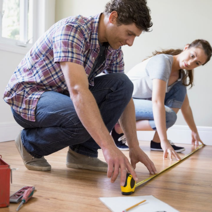 Step 1: Figure out the square footage of each room in which you want to install laminate-wood floors. To do so, use a tape measure to determine the room’s length and width. Then multiply the length by the width to get your square footage. For instance, if the room is 12 feet wide and 12 feet long, you will need enough flooring for 144 square feet (12×12=144).